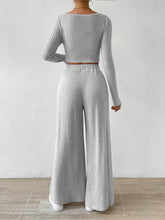 Ribbed Knit Crop Top and Wide Leg Pants Set - Light Gray